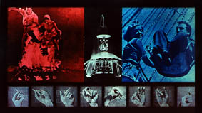black & white and color photograph, zinc book-printing blocks . 117 x 214 cm . 1989 / 90 Exhibited at Frame by Frame, Image par Image - one-day exhibition by IOLS in basement in Zagreb, 1990. / cat. |