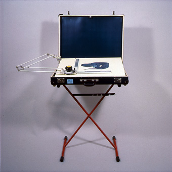 oil painting on a portable architectural drawing board, suitcase . 160 x 120 x 60 cm . 1990 It was presented at the thirth annual mixed-media exhibition entitled ìFrame by Frame, Image par Imageì, 1990. / cat in collaboration with Zeljko Serdarevic . The Imitation of Life Studio |