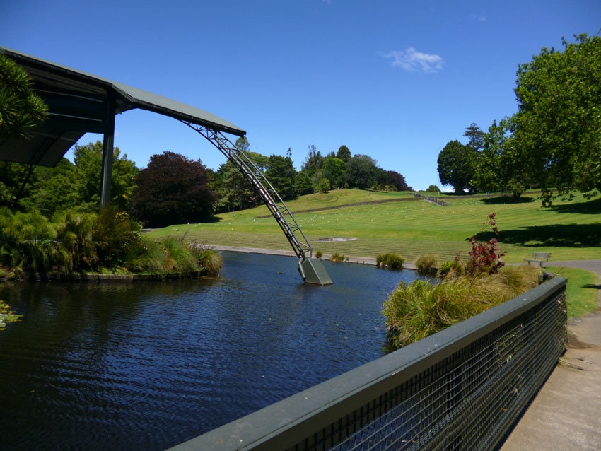The reload_refresh_sync icon is planted into the side of the Bowl of Brooklands at the Pukekura Park in New Plymouth. When clicked by a computer mouse, the ‘reload’ or ‘refresh’ button reloads a page when browsing the internet. The same icon is used to sync electronic equipment, and also as a symbol for recycling. The installation act as a small button at the Earth’s land surface, interacting with the entire planet from its location at New Zealand (39°11’5’’ S, 174°7’33’’ E). The artist is asking us to refresh our relationship to the environment, in a project that mixes humble turf with modern electronics. Image is aligned with Southward equinox. The Southward equinox (or September equinox) is the moment when the sun appears to cross the celestial equator, heading southward. Due to differences between the calendar year and the tropical year, the Southward equinox can occur at any time from the 22nd to the 24th day of September. In the Northern Hemisphere the Southward equinox is known as the autumnal equinox. In the Southern Hemisphere it is known as the vernal or spring equinox. The horticulture unit is made at existing grass field: majority of kikuya (Pennisetum clandestinum) mixed with clover (Trifolium) and Sport Rye / Perennial ryegrass (Lolium perenne). The newly planted ryegrass in the shape of “Reload” icon distinguish the design with different texture and darker shade of green colour. It is a mixture of Chewing fescue (Festuca rubra subsp. commutata), Sport Rye / Perennial ryegrass (Lolium perenne), and tall fescue (Festuca arundinacea). The maintenance of the horticulture unit “reload_refresh_sync” fits within regular maintenance of the grass fields in Kete Pukekura Park. It is expected that over the years the design will gradually vanish because of the mixing of new grass by surrounding grass, propelled by wind. It is open to made a new installation again. Project is made during SCANZ 2013: 3rd nature residency and supported by the Ministry of Culture of the Republic of Croatia. |